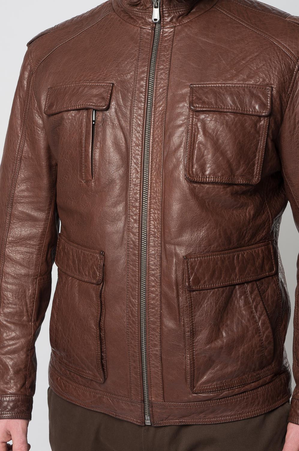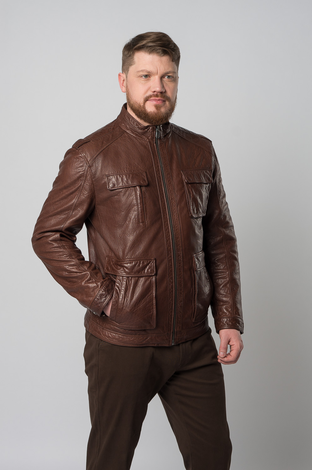 Мужская куртка из натуральной кожи в коричневом цвете, который привлекает внимание. Удобный полуприлегающий фасон понравится тем, кто прежде всего ценит свободу движений. Аккуратные вместительные карманы позволяют взять с собой самое важное. Изделие дополнено невысоким воротником-стойкой и застежками на выбор: молнией или кнопками. Мы гарантируем бесплатную примерку и возврат товара в течение 30 дней.