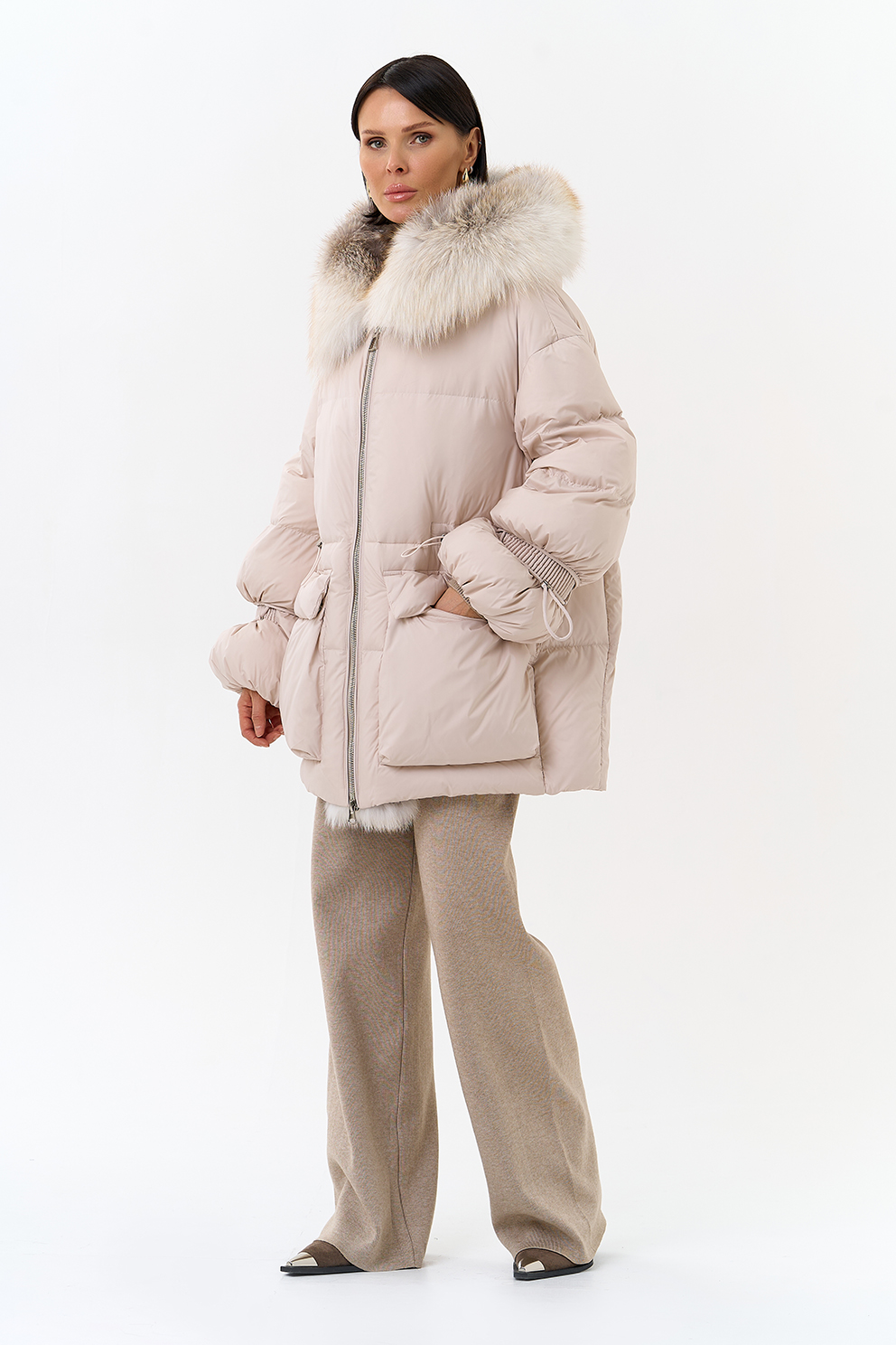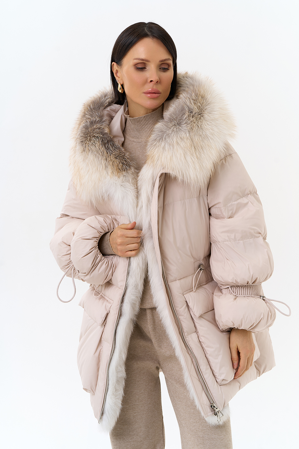 Крой воротника - капюшон, отделка лиса