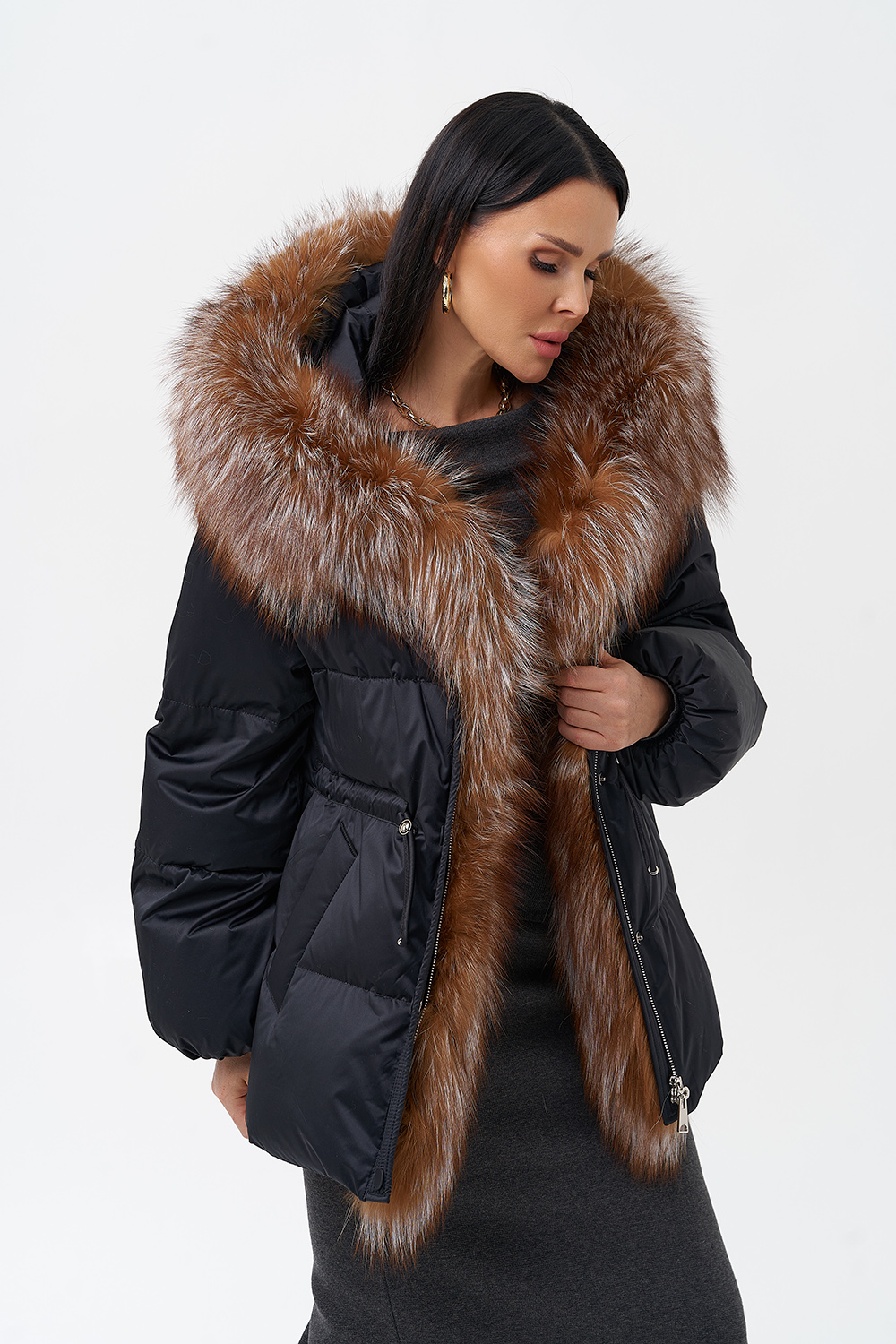 Крой воротника - капюшон, отделка лиса
