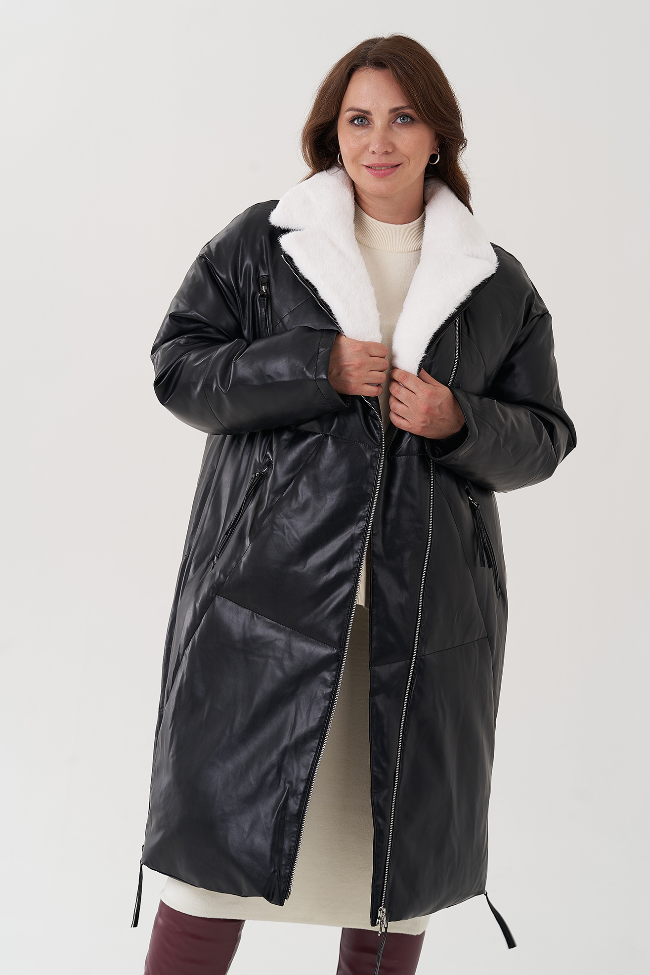 Отделка воротника - искусственный мех, белый