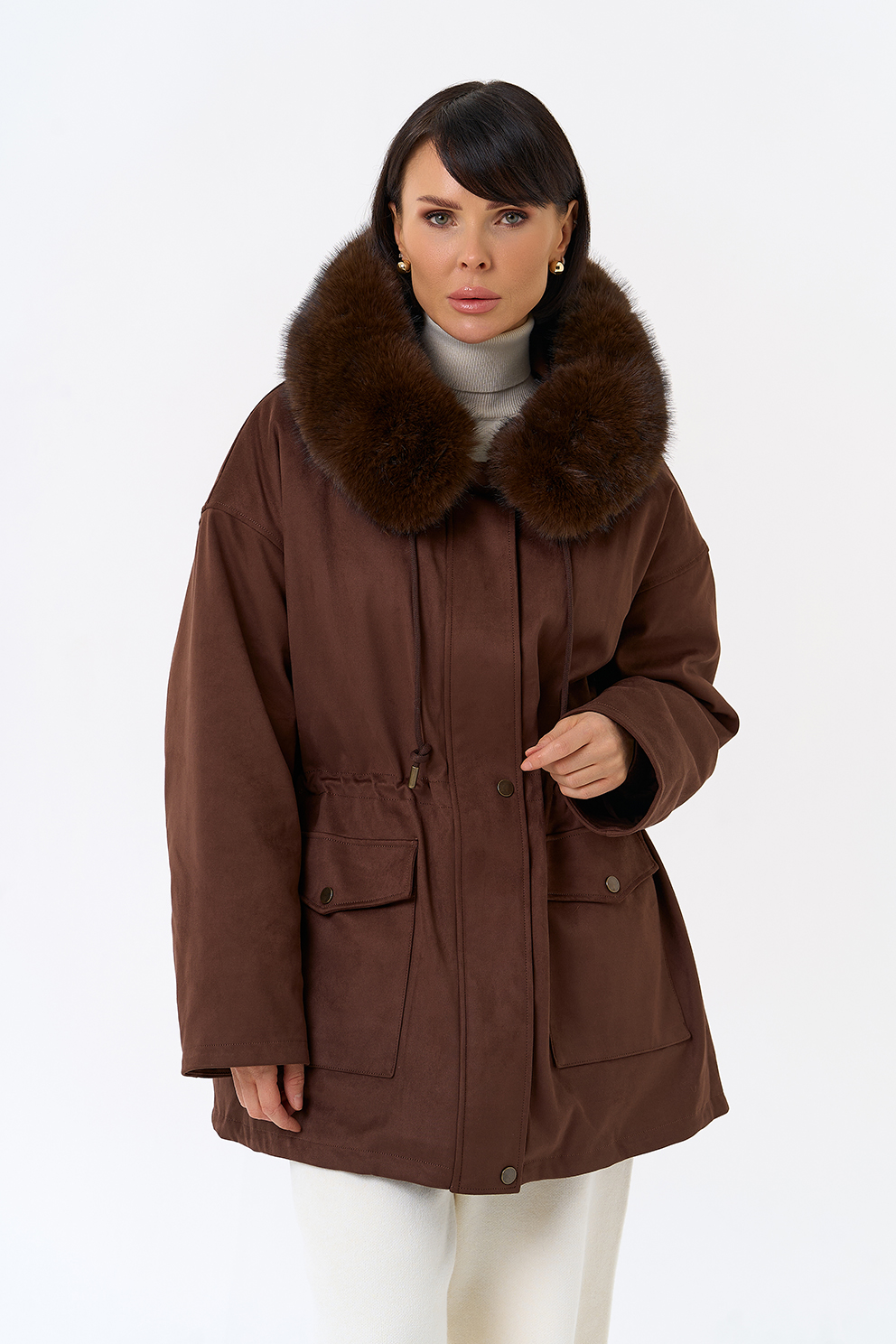 Отделка воротника - эко мех, цвет коричневый